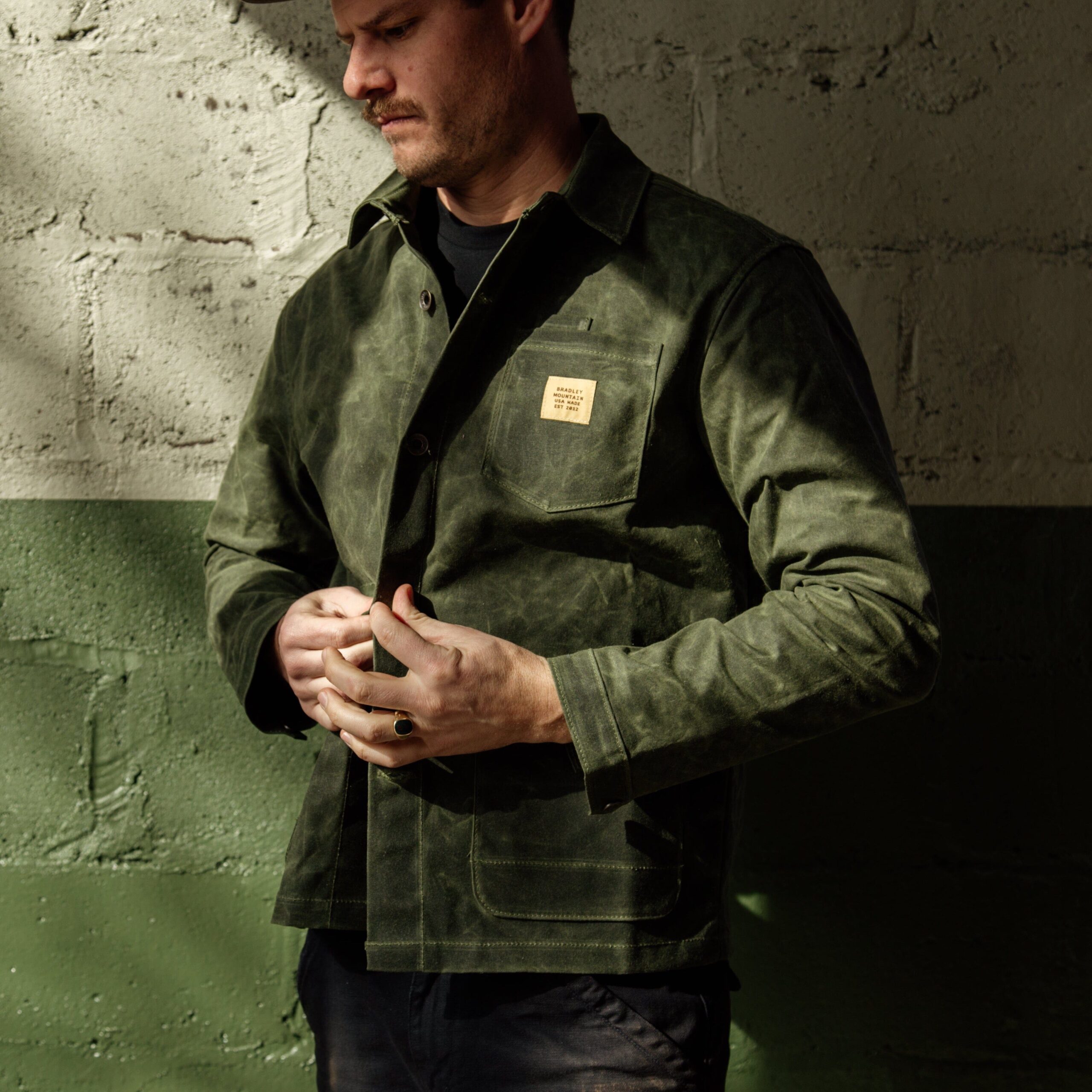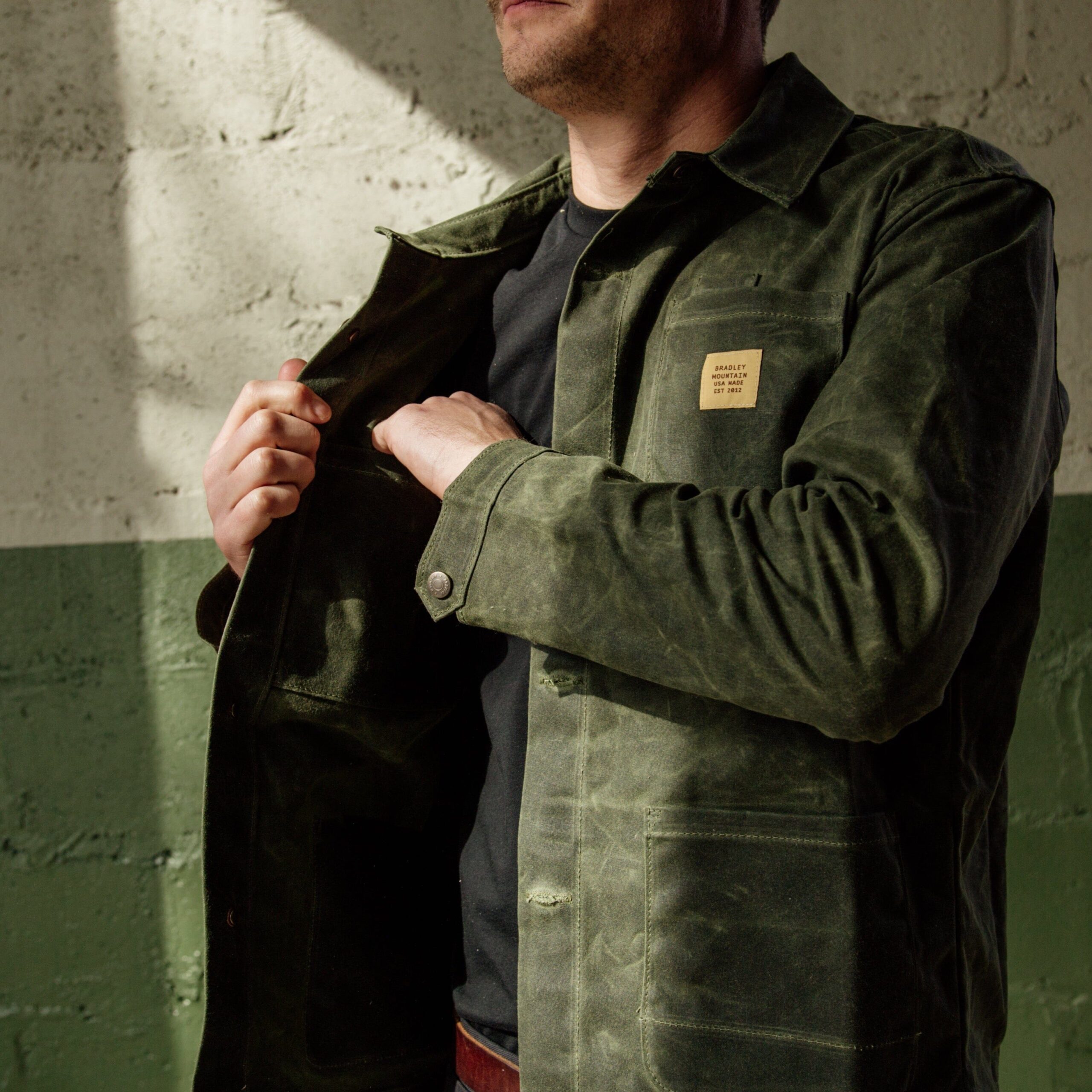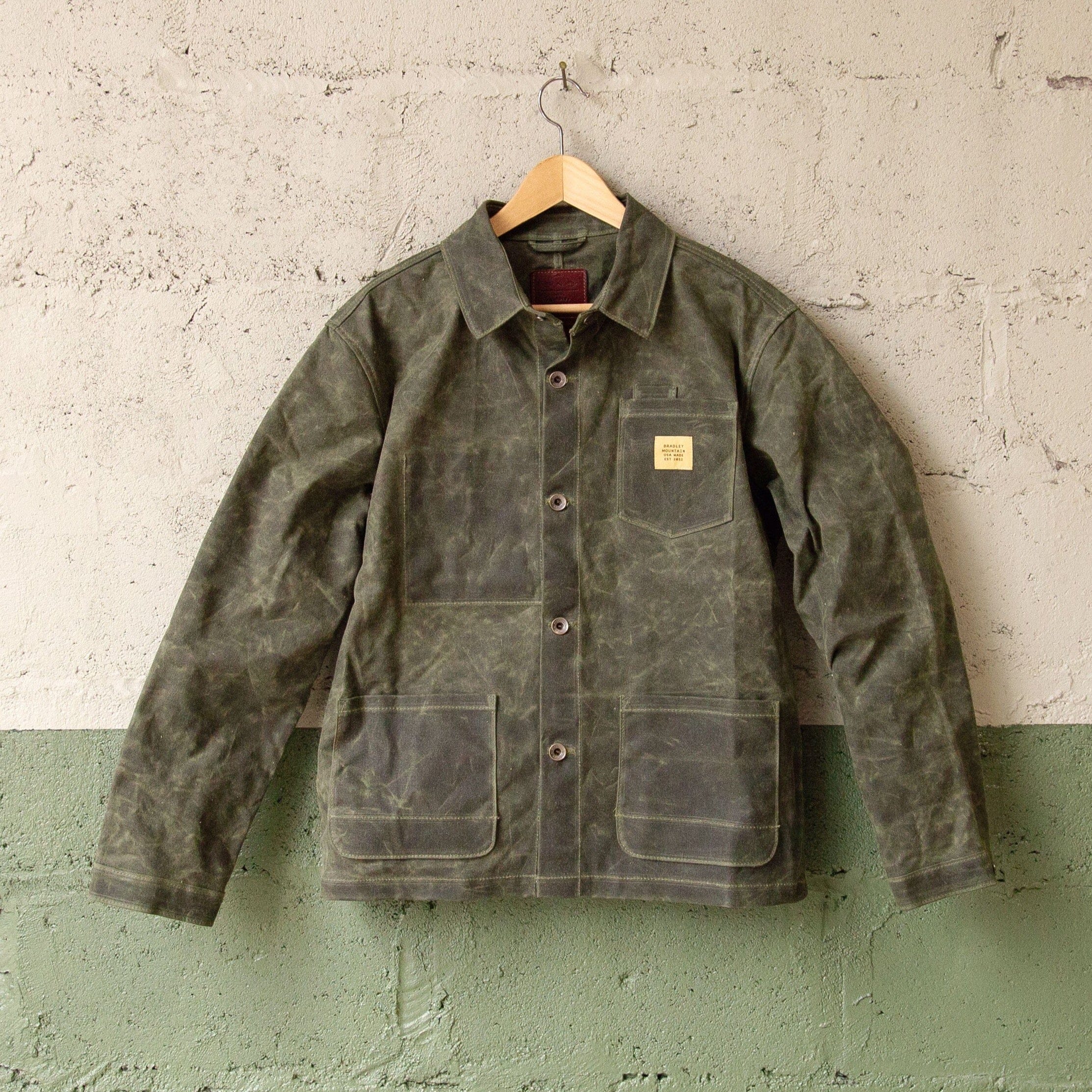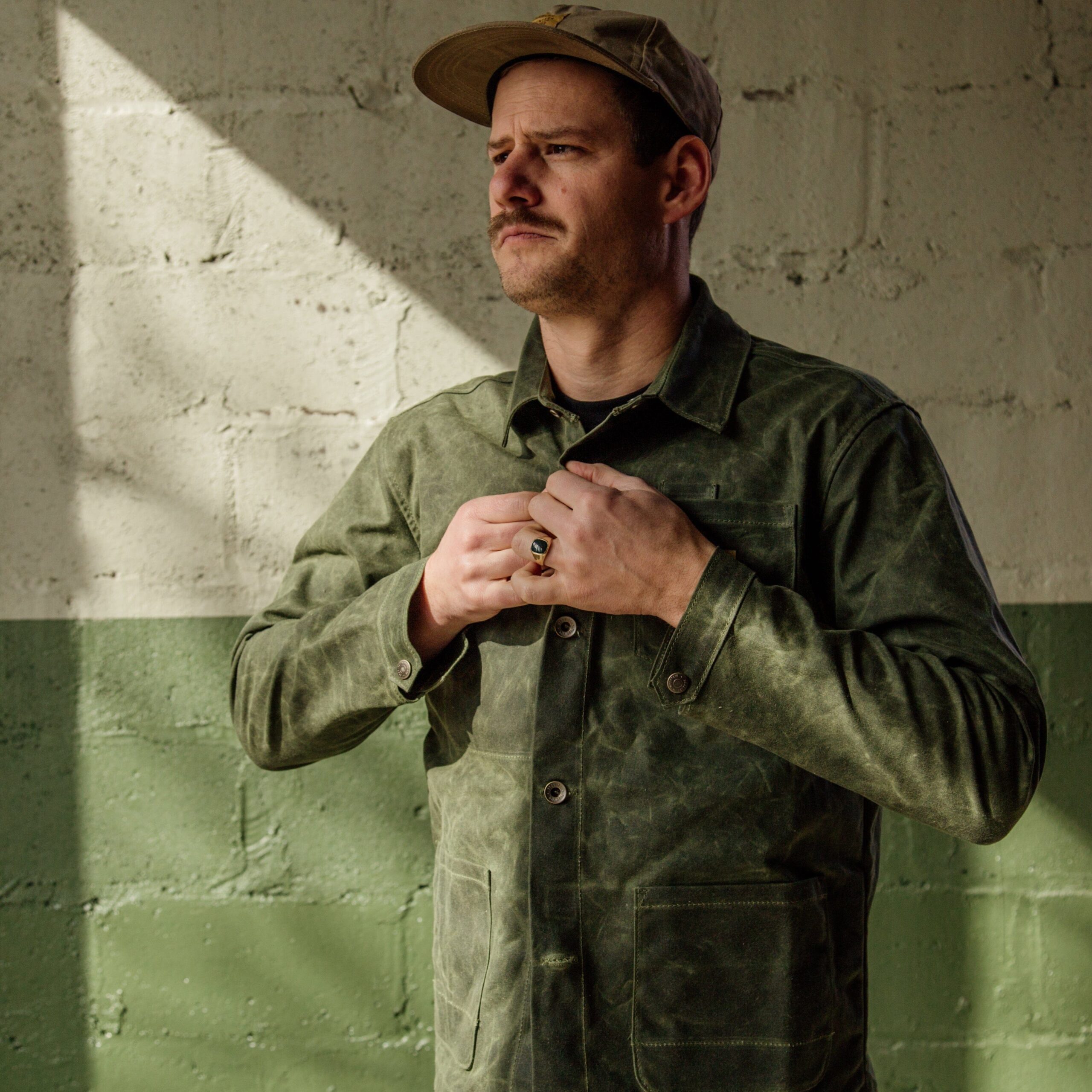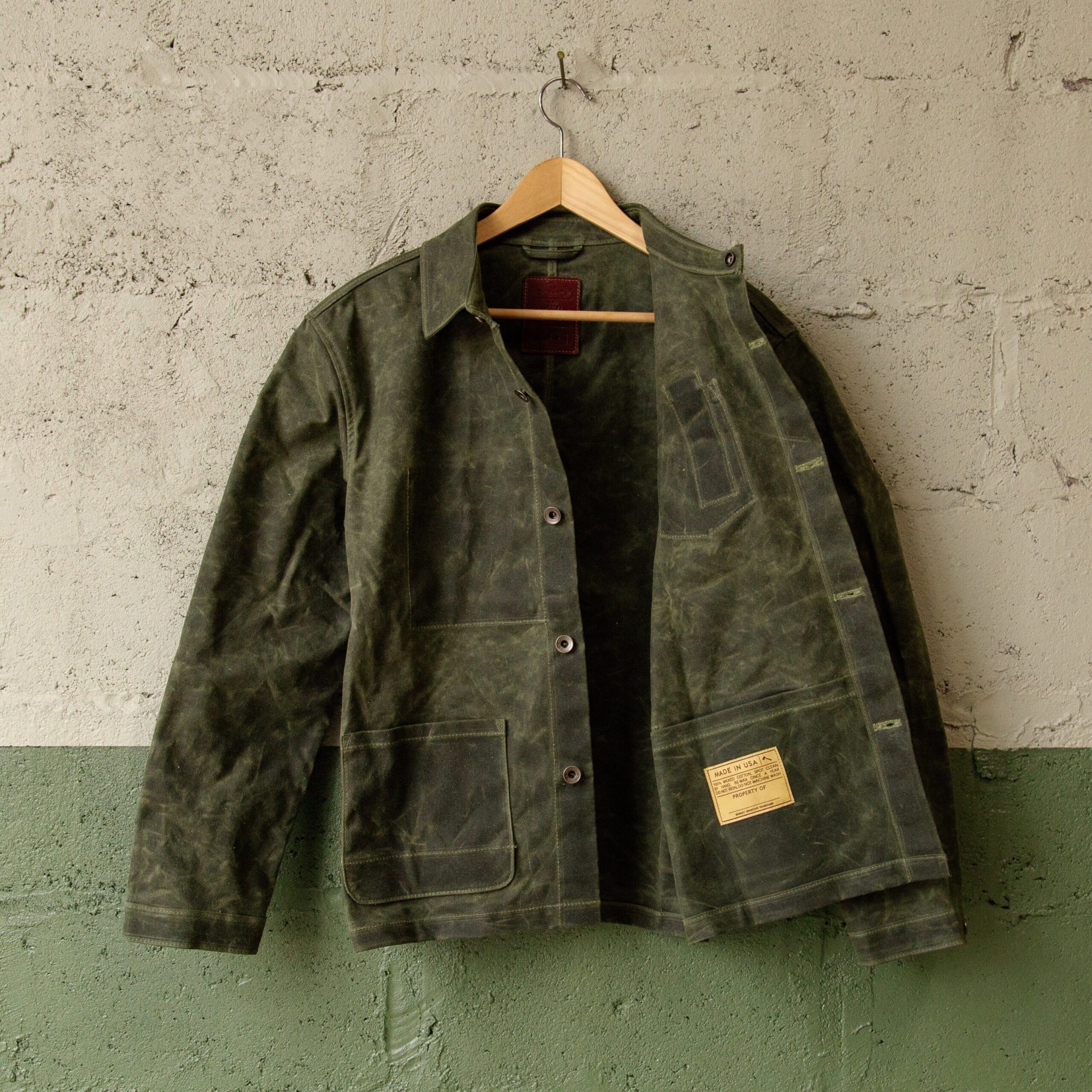 The Edison Chore Coat. In our opinion, a solid chore coat belongs in everyone’s closet and is debatably the most versatile piece of outerwear. Made with a waxed duck canvas, this supply jacket is vintage inspired but boasts a modernized fit. It’s made to be worn tough in the workshop and easy enough to dress up by layering over a button down. Bottom line, it can be worn year round and it’s built to last. 11 oz Waxed Duck Canvas Antiqued Brass Button Shanks Antiqued Brass Snaps on Top Button & Sleeves Lower Reinforced Dump Pockets Chest Pocket with Pen Slot. Interior Chest Pocket Large Interior Stow Pocket Click here for sizing chart Made in USA