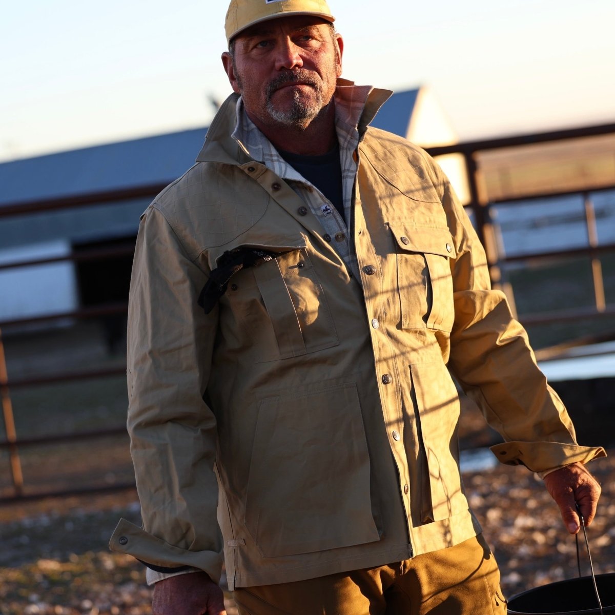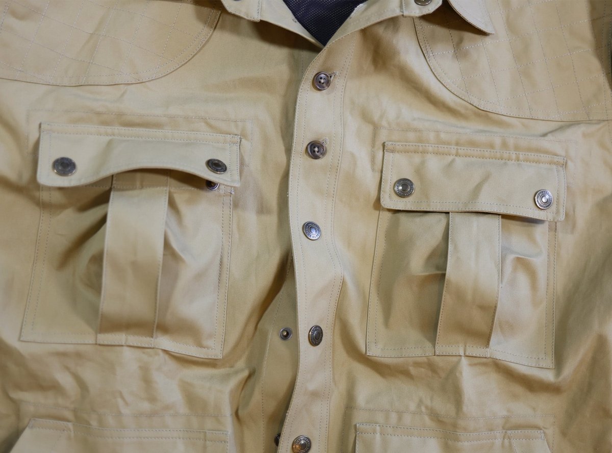 Details Rugged – Please don’t call this a shirt…it’s not. We only call it so to respect its origin and evolution towards this 30th Anniv. Edition. And you don’t need to treat this garment with extraordinary care, or concern for maintaining its appearance after years of wear. In fact, this jacket will never look the same twice, from one day to the next, it will proudly display every new crease and scrape it earns as it catalogs your adventures for future contemplation. Durable – Built with 8oz DryHandle®, our proprietary 100% cotton weatherproof fabric. Double needle stitched throughout using a hearty, 104 size bonded nylon thread. Functional – Every aspect of this jacket is designed to serve the purpose for which it was intended. Thoughtful and carefully assembled, the list is impressive: convertible extreme weather collar; integrated cuff-to-elbow patch; quilted shoulder panels; back yoke ventilation system; solid brass snap closures; Doghouse button configuration at upper chest; bellows pockets throughout. The Build – This jacket is constructed in our outerwear shop, where heavy duty sewing equipment is deployed to ensure the enduring integrity of every seam, every joint and every reinforcement stitch. It’s in this tiny, humble shop in the heart of the Rio Tinto region of Portugal, where our man and fellow outdoorsman, Sergio, the second-generation owner operator, and his team of craftsmen and women create masterpieces like this, literally one at a time. The wearing – Cut like an outerwear garment with plenty of room in the torso, shoulders and sleeves to accommodate considerable layering. Unlined except for the sleeves, this is a multipurpose kit that can protect you against the wild elements of the saltmarsh just as well as it can from the wilderness of New York’s Madison Ave. And you can tell those that ask, and they will, that jacket is completely unruly and difficult to manage under the best of times.