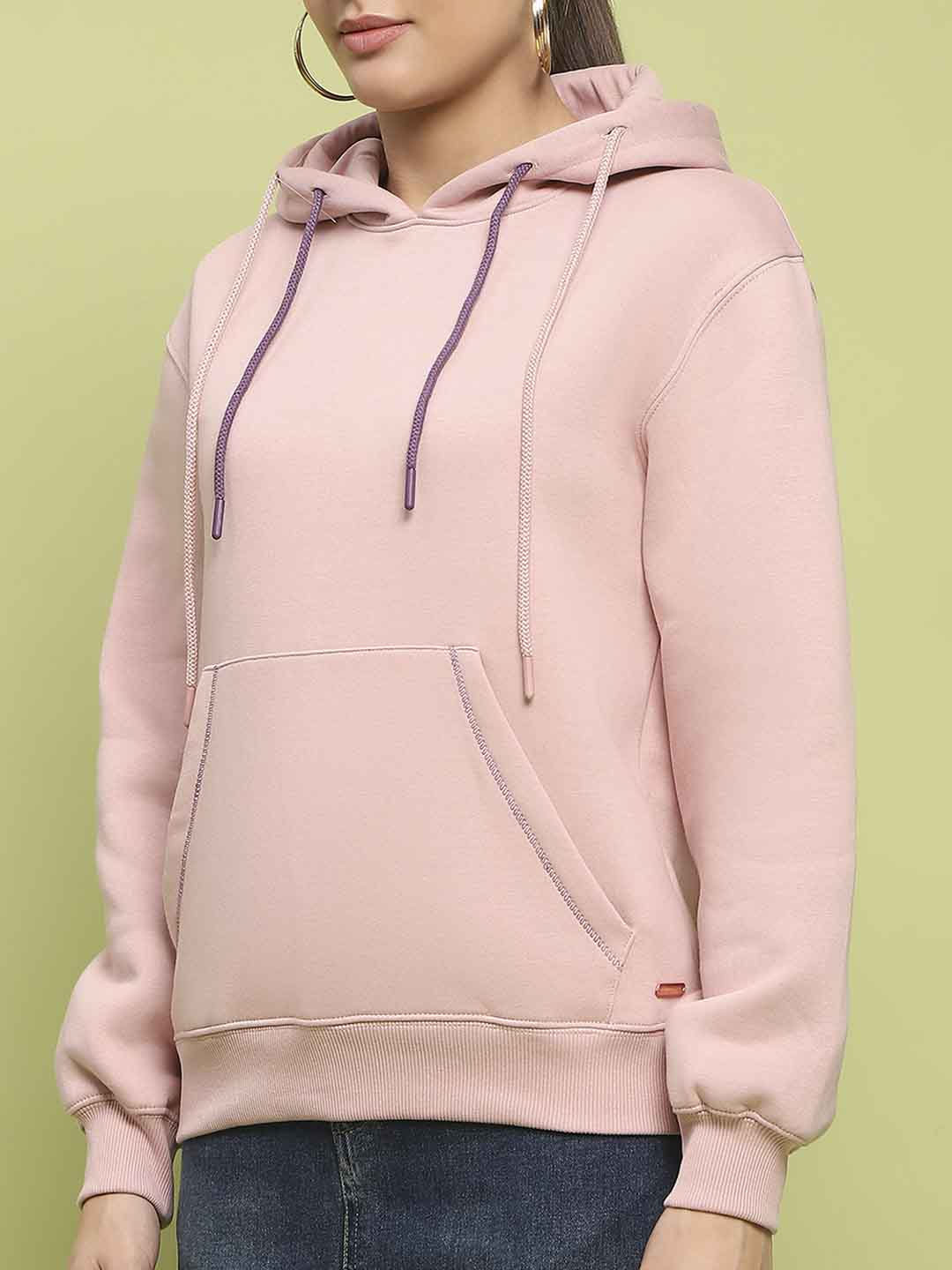 Madame Fleece Double Drawstring Hooded Dusty Pink Sweatshirt