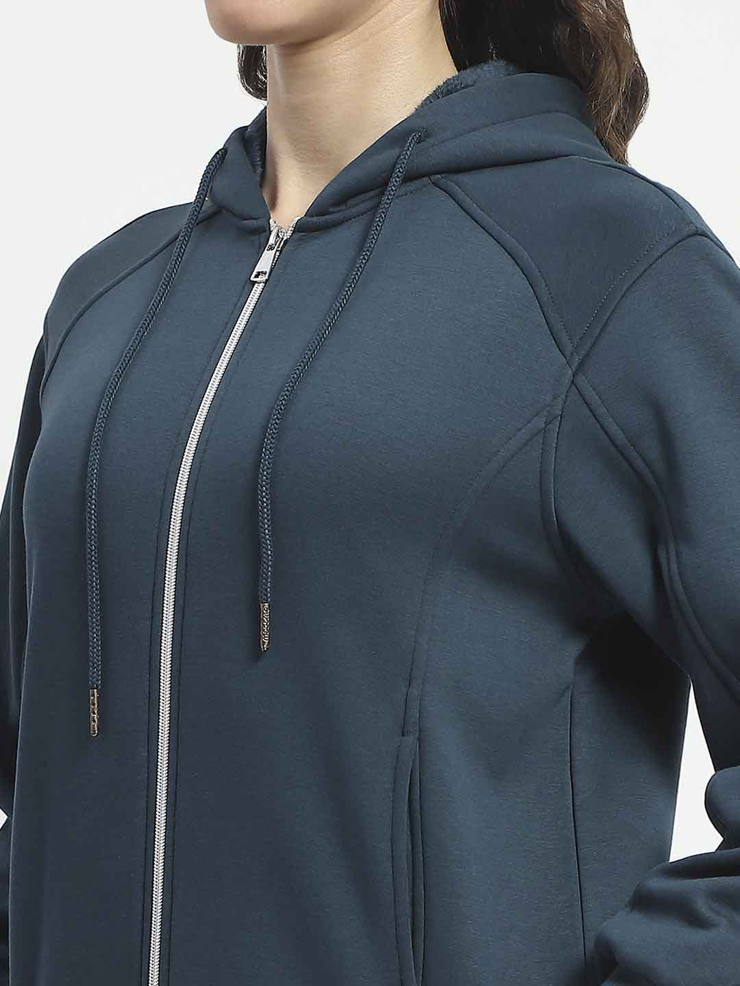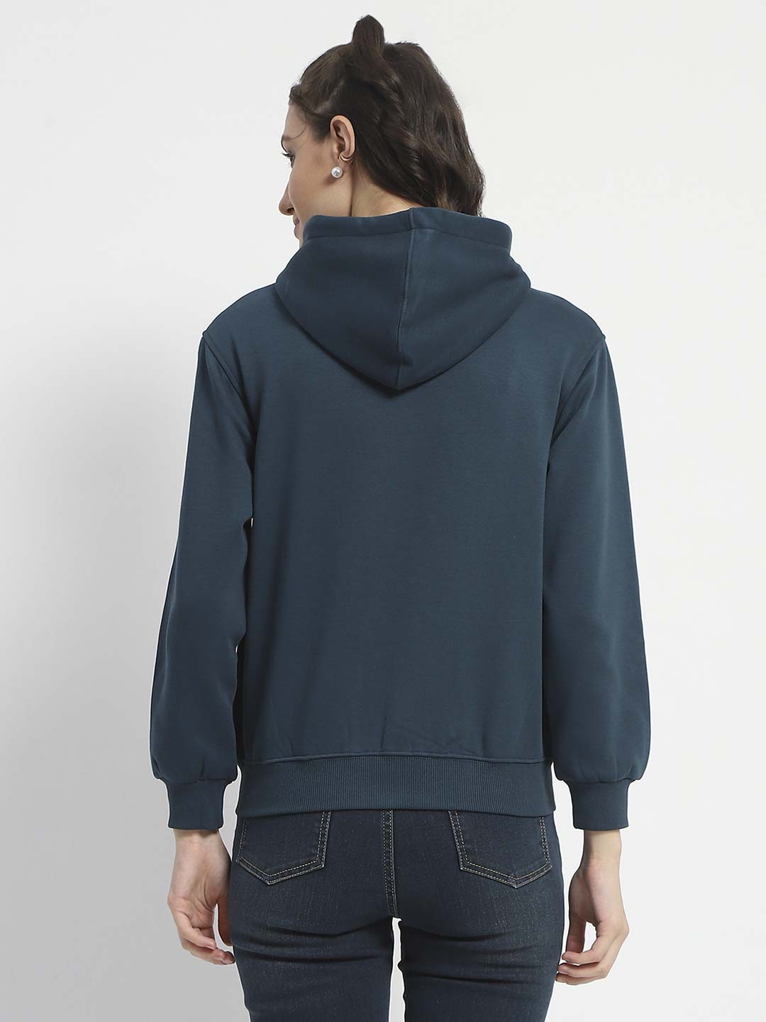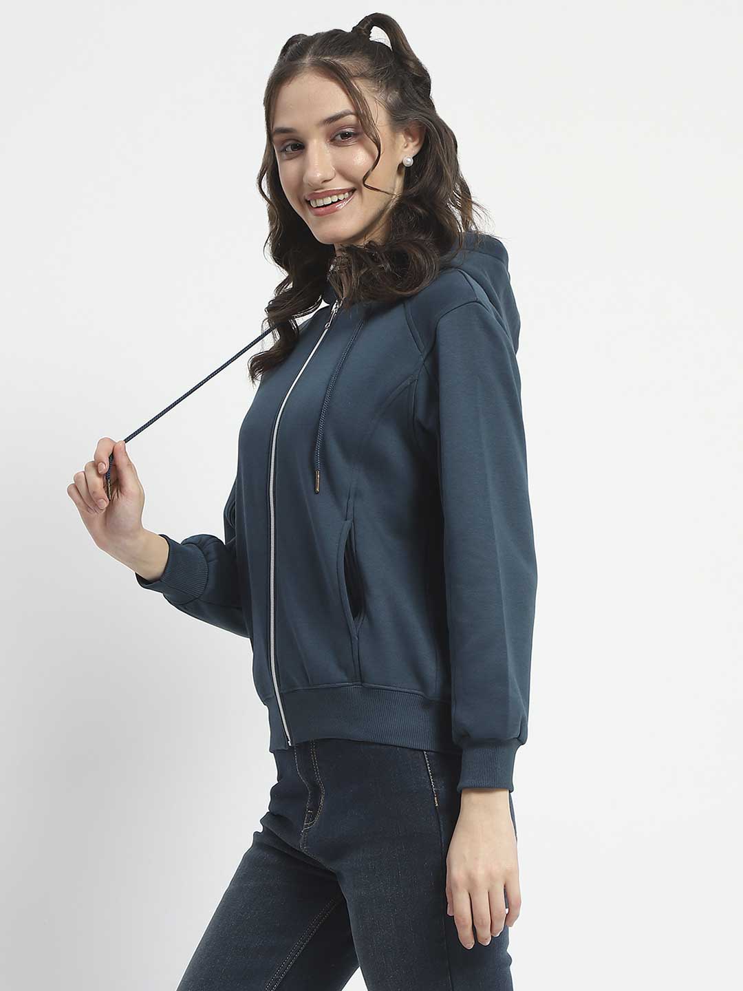 Madame Zip and Hooded Solid Peacock Cotton Sweatshirt
