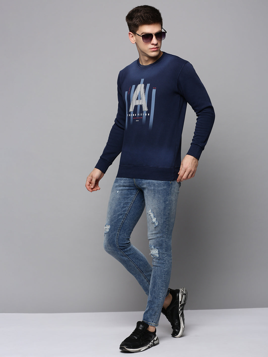 Elevate your wardrobe with our Men Navy Printed Sweatshirt, a perfect blend of style and comfort. Designed for the modern man, this sweatshirt features a trendy print that adds a unique touch to your casual look. Ideal for chilly days, it combines warmth with a stylish edge. Stylish navy blue color with eye-catching prints for a contemporary vibe. Soft, breathable fabric that ensures all-day comfort. Versatile design that pairs well with jeans, joggers, or shorts. Why to buy this product? This sweatshirt is not just an outfit; it’s a statement. Perfect for both lounging at home and stepping out with friends, it offers versatility and style in one package. Its breathable material keeps you cozy without compromising on fashion. Styling tips Layer it under a denim jacket for a trendy, layered look. Pair it with chinos and sneakers for a smart-casual outfit. Wash care instructions: To maintain the vibrant prints and fabric quality, machine wash cold with similar colors. Avoid bleach and tumble dry on low heat for best results.