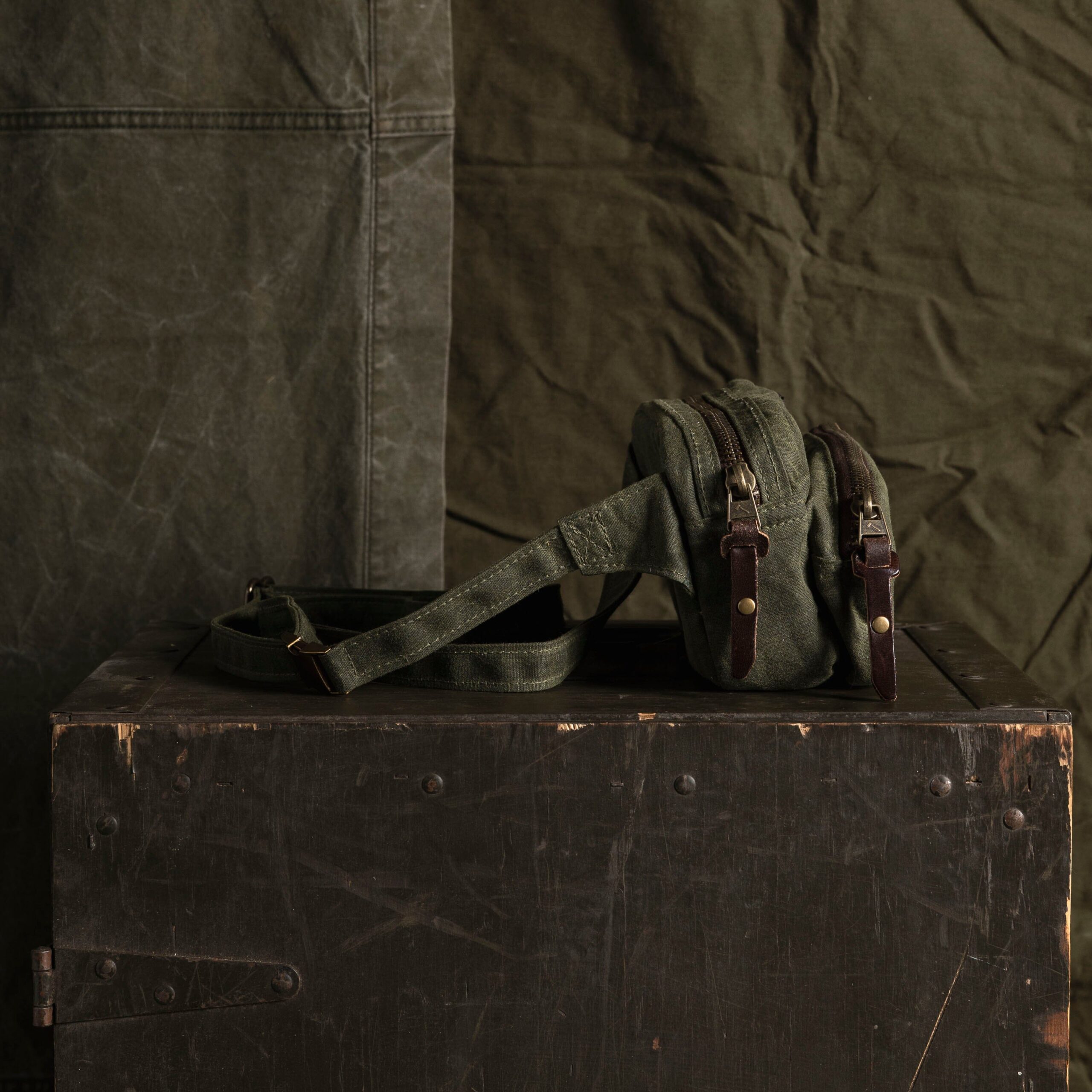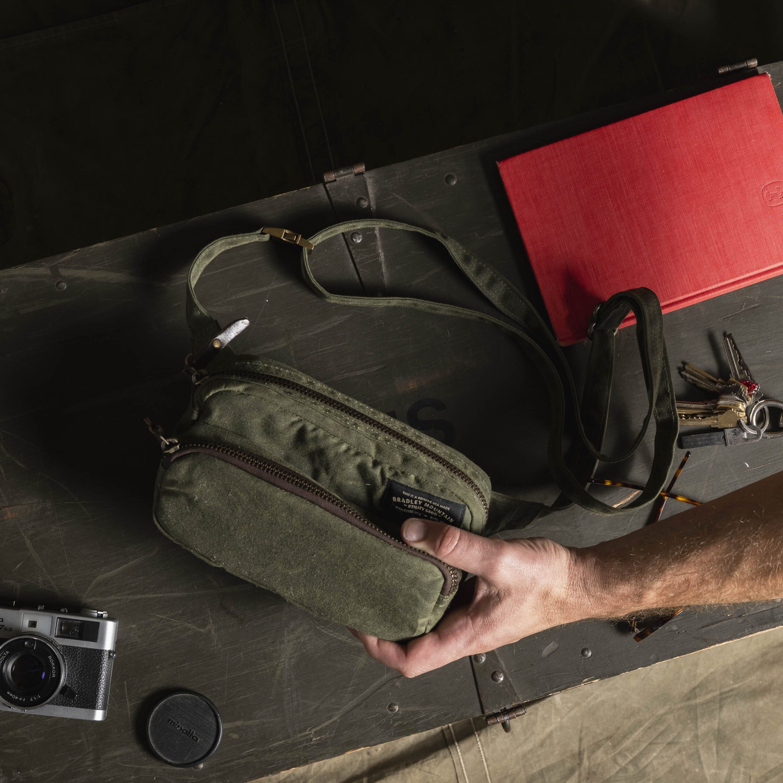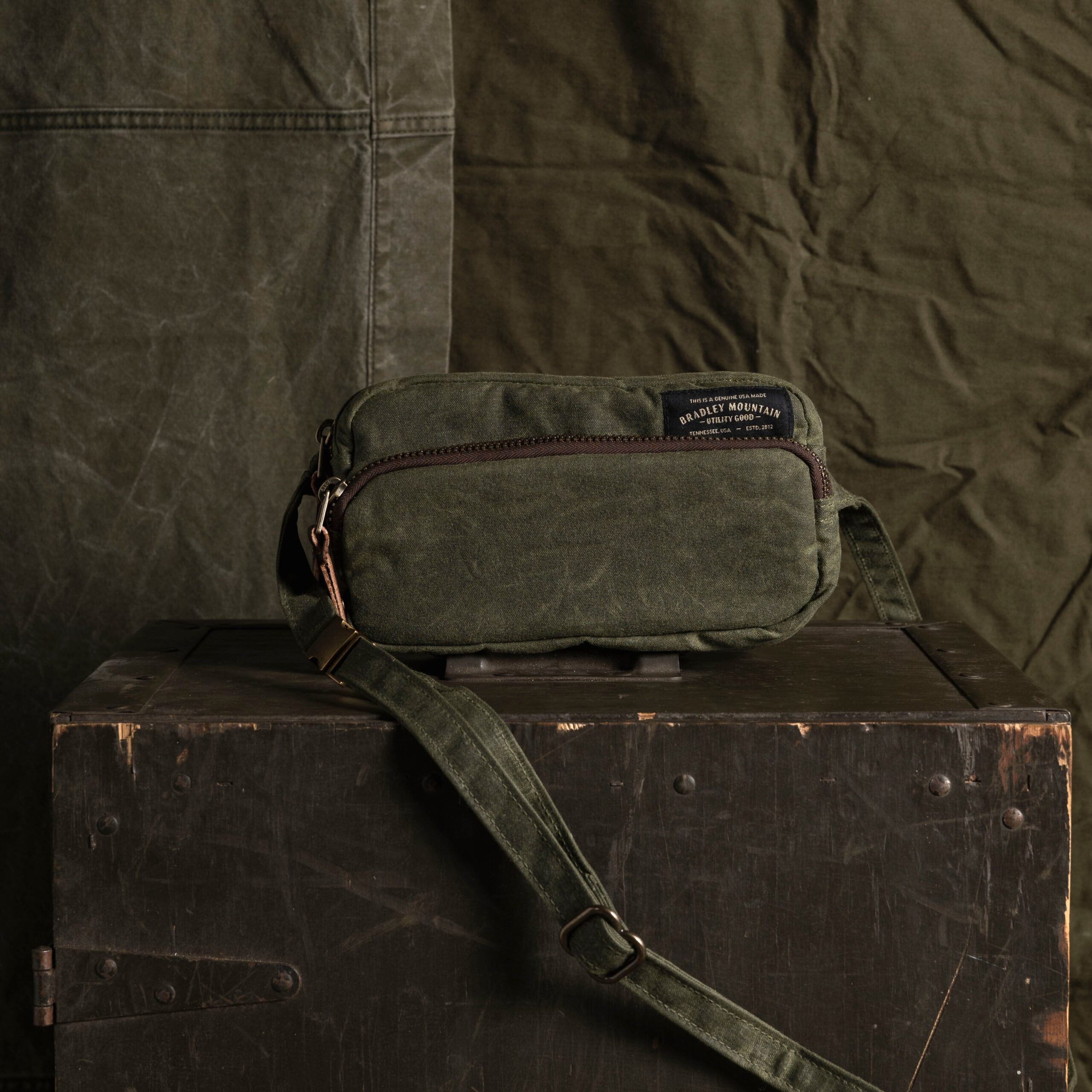 Keep your pockets empty with this beautiful waxed canvas crossbody bag. Carry everything you need for a quick trip, or just going throughout your day, with this small wonder. This bag is perfect for traveling as well. Throw your sunglasses, phone, wallet, point and shoot camera, chapstick, and passport into it. Wear this over your shoulder or across your body. 12 oz waxed duck canvas Antiqued brass zippers Solid Brass quick-release buckle Padded on all sides Front Pocket Dimensions: 3.25″H x 8″L x 1.5”W Main Compartment Dimensions: 5″H x 8″L x 2.25”W USA Made